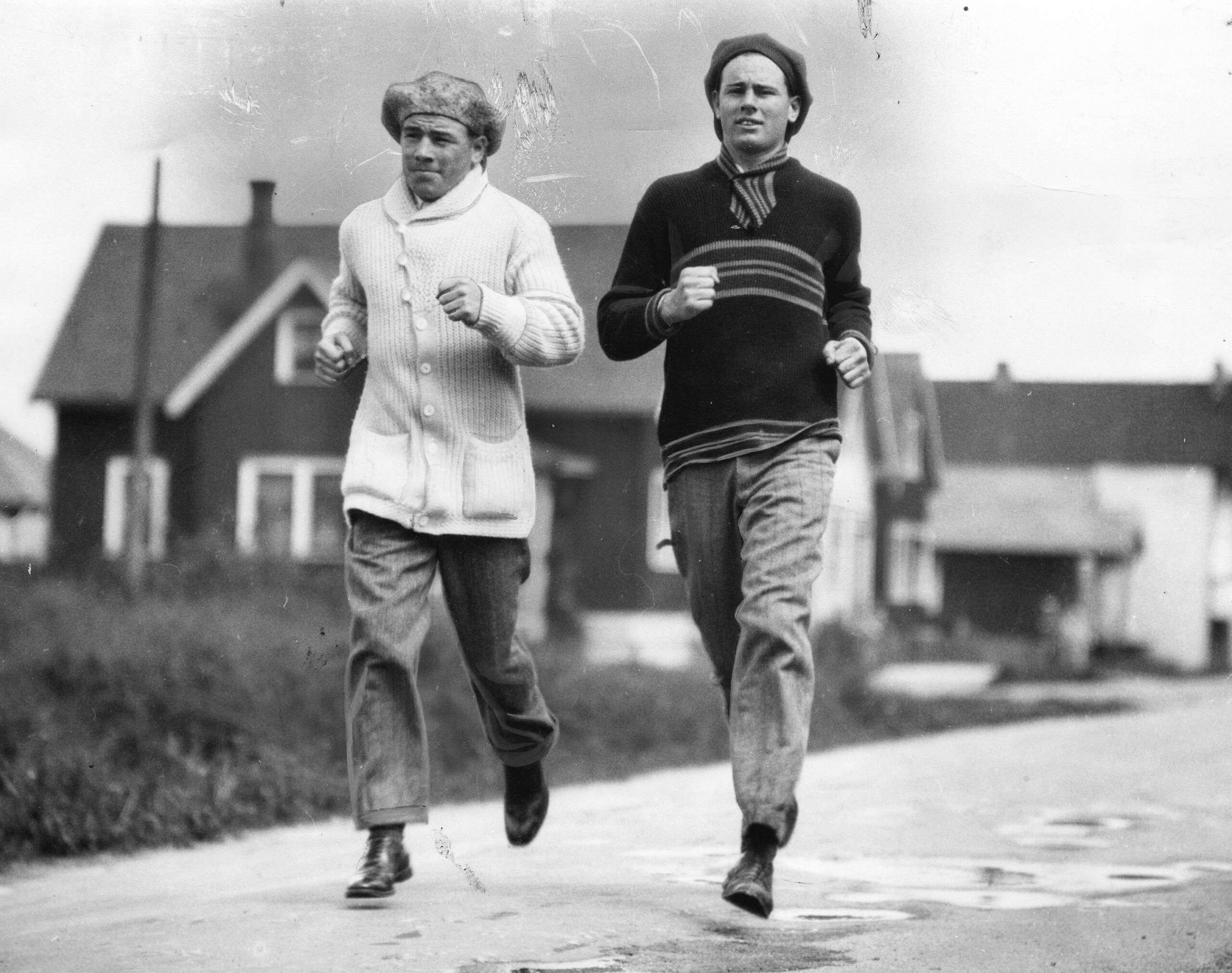Welterweight Jimmy McLarnin in training with his brother Bob. Photograph attributed to Stuart Thomson, City of Vancouver archives.