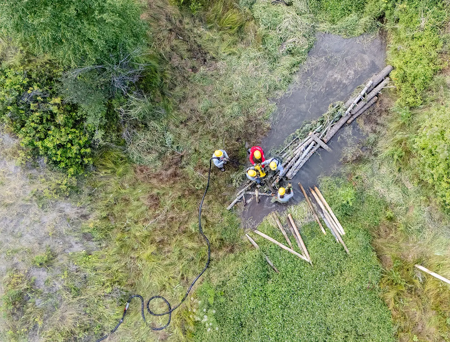 In the past, BDAs have been proven to attract real beavers, he adds. For example, in 2014, 10 BDAs were built across five streams in the Scott River Basin in California—real beavers were found at all BDAs within the next four years. “Running water, or water that sounds like it’s constrained or is pushing through something, really attracts beavers. They want to fix it. It’s their natural thing. They want to dam it up,” he says. “That’ll be part of the monitoring that goes on after. It would be interesting to see what potentially happens. Do we actually get some beavers showing up here at some point?”