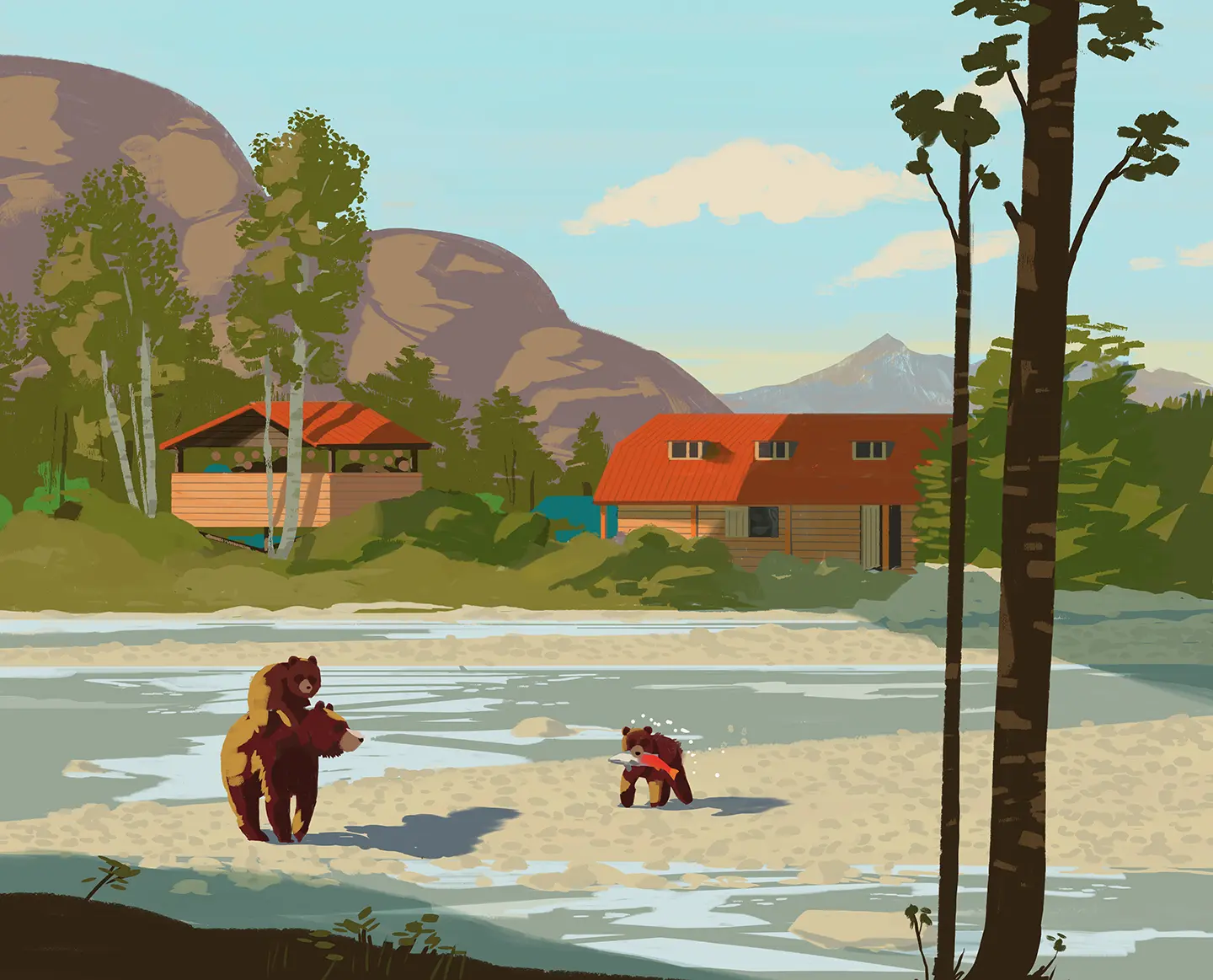Early on my first morning, I stood in a riverside blind with a small group of Canadians. We were swapping whispered stories about the cancelled plans that led us here—safaris, Italian getaways, long-dreamed-of cruises—when a mother bear and her gangly second-year cubs came around the bend. Staring into the gin-clear water, one cub made a comical, splashy leap into a pool filled with red-sided salmon and came up empty, shaking water off like a dog. The next cub had better luck, catching a fish and holding it clenched in its teeth while floating past its sibling. Behind them, the cloud-scraping peak that Alexander Mackenzie named Stupendous Mountain framed the scene. The three continued their lazy hunt, then vanished around the next bend in the river.
